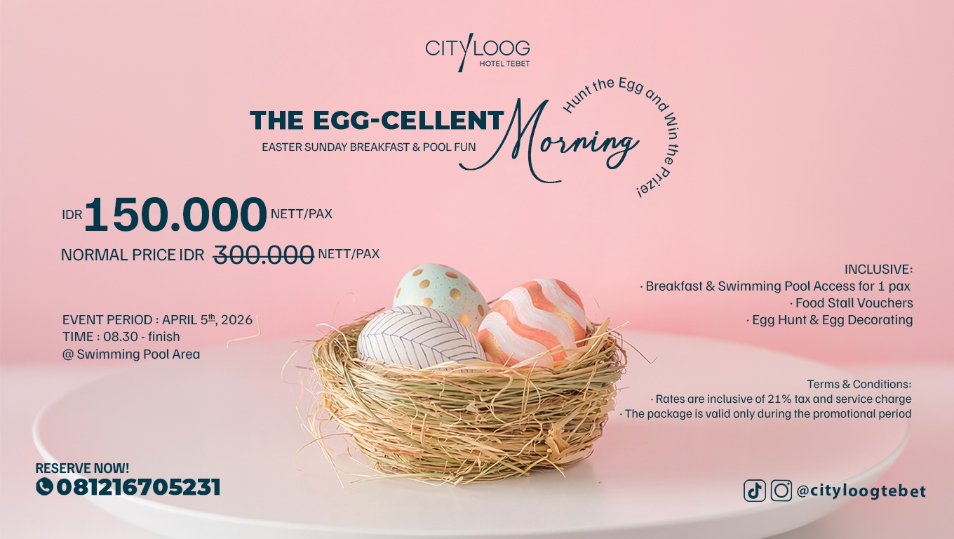 Looking for the most exciting Easter event in Jakarta? Join us for The Egg-cellent Morning at Cityloog Hotel Tebet on April 5th, 2026! We have curated a special Sunday featuring a delicious morning breakfast buffet and outdoor activities, making it the perfect holiday for kids and parents alike.